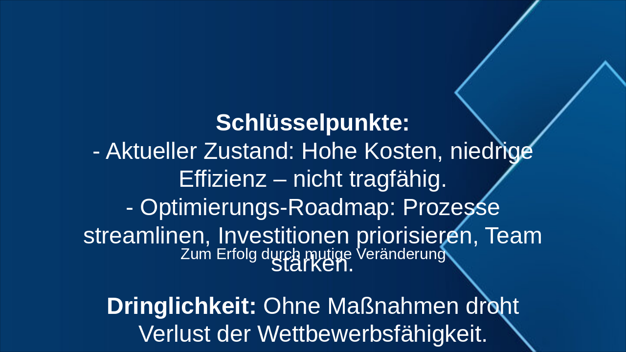 - Optimierungs-Roadmap: Prozesse streamlinen, Investitionen priorisieren, Team stärken.