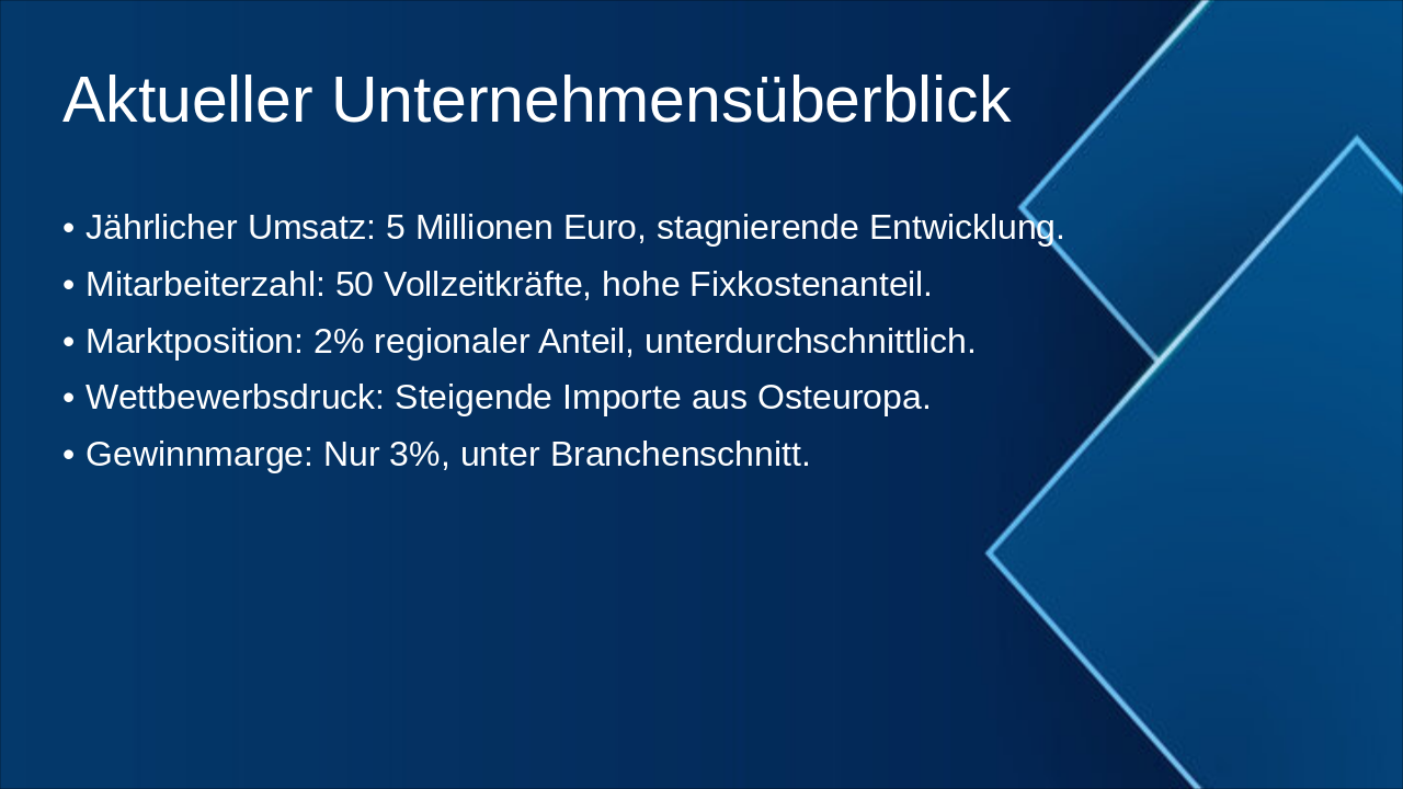 Wiederholen Sie die Schlüsselpunkte der Analyse, betonen Sie die Dringlichkeit der wirtschaftlichen Herausforderungen und skizzieren Sie klare nächste Schritte. Ermutigen Sie den Inhaber zur sofortigen Umsetzung.