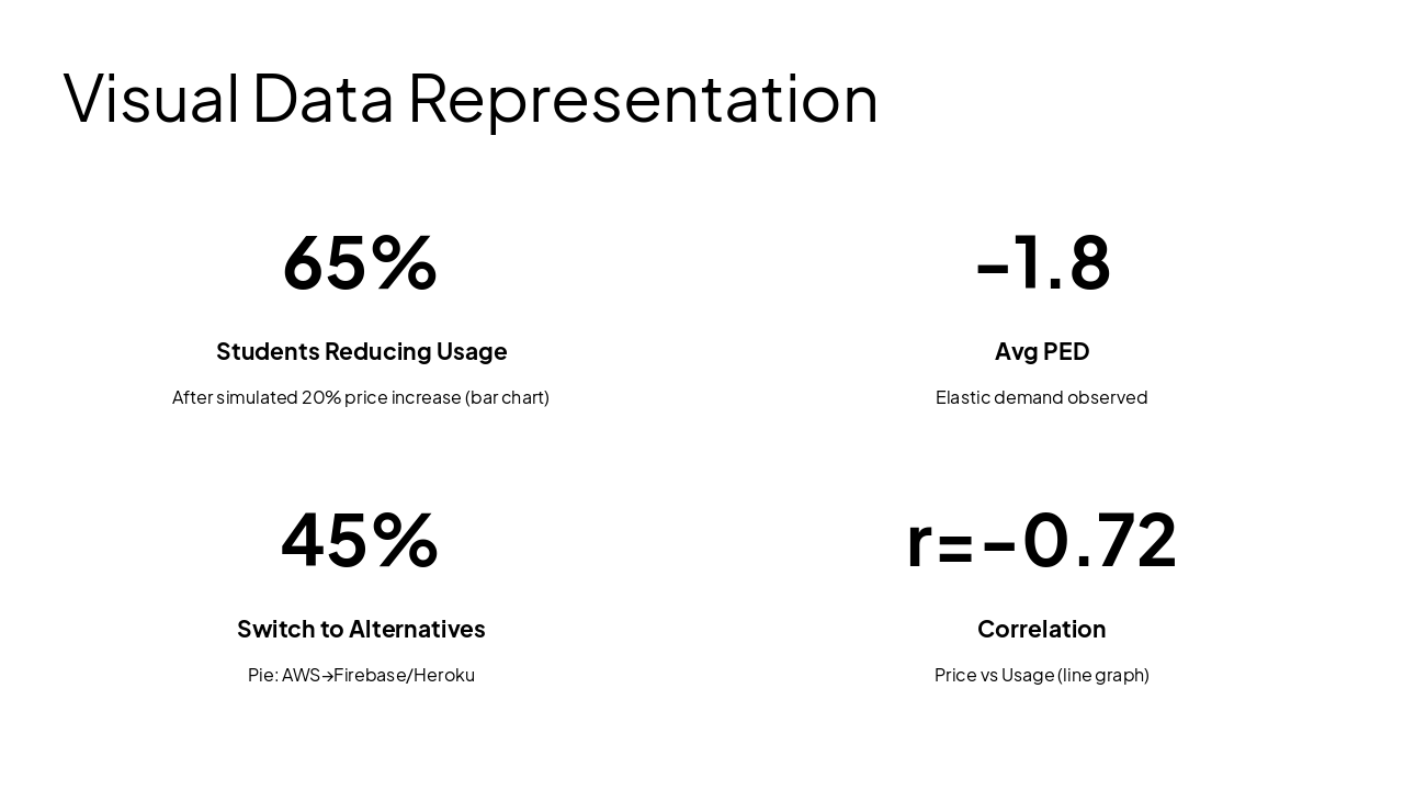 Key Findings: CS students exhibit elastic demand (PED >1) for cloud hosting credits Implications: Providers should balance pricing; Students seek cost-effective alternatives Recommendations: Offer tiered credits, monitor cross-elasticity with competitors