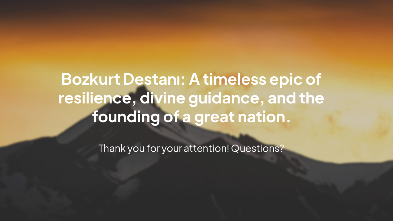This presentation delves into the Bozkurt Destanı (Epic of Ergenekon), a foundational myth of Turkic and Mongolic peoples. It covers historical origins, the survival story led by the gray wolf, life in Ergenekon, the great escape, symbolism, cultural