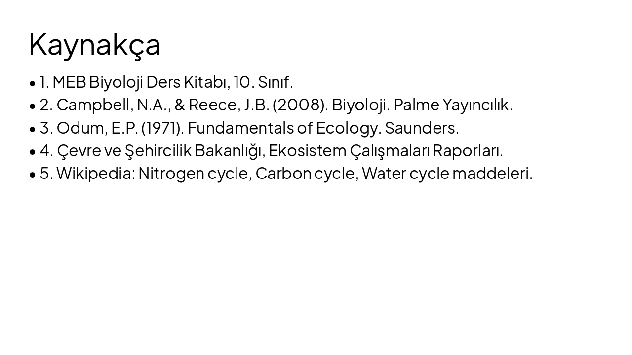 | 5 | Madde döngülerinin ekosistemler için temel işlevi nedir? |