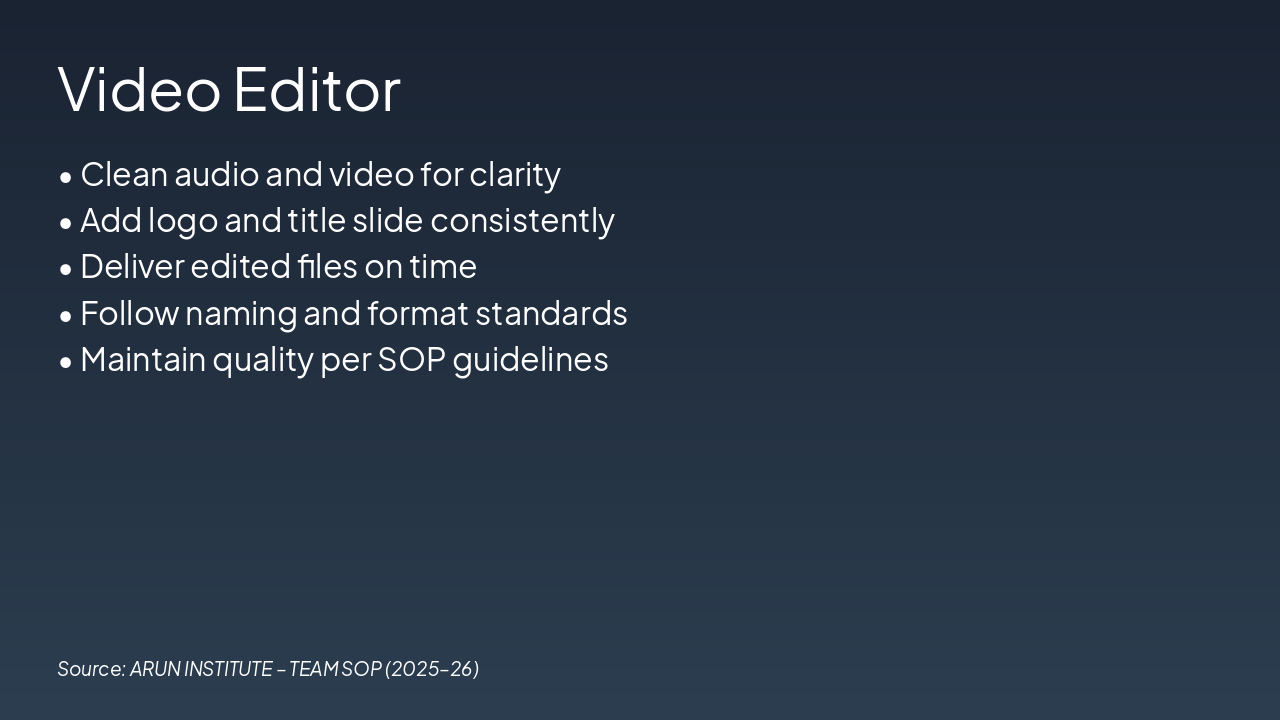 Slide 1 - ARUN INSTITUTE – TEAM SOP (2025–26)