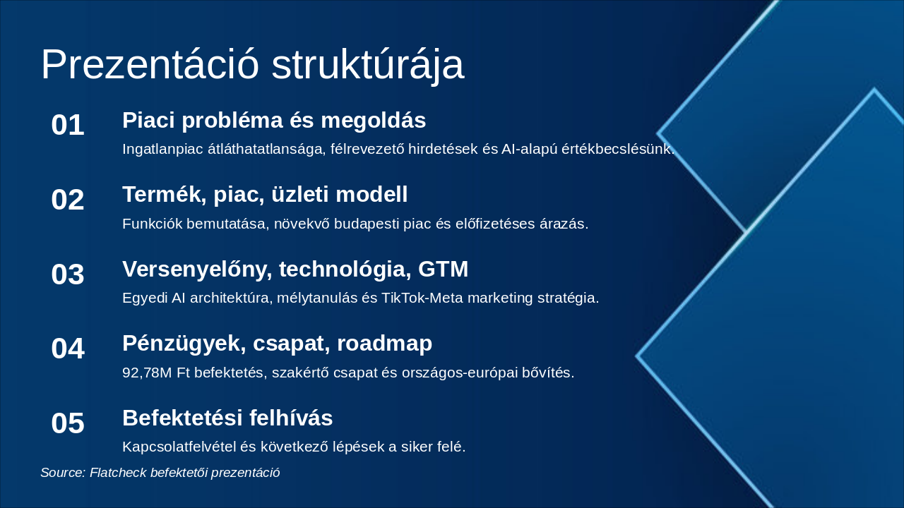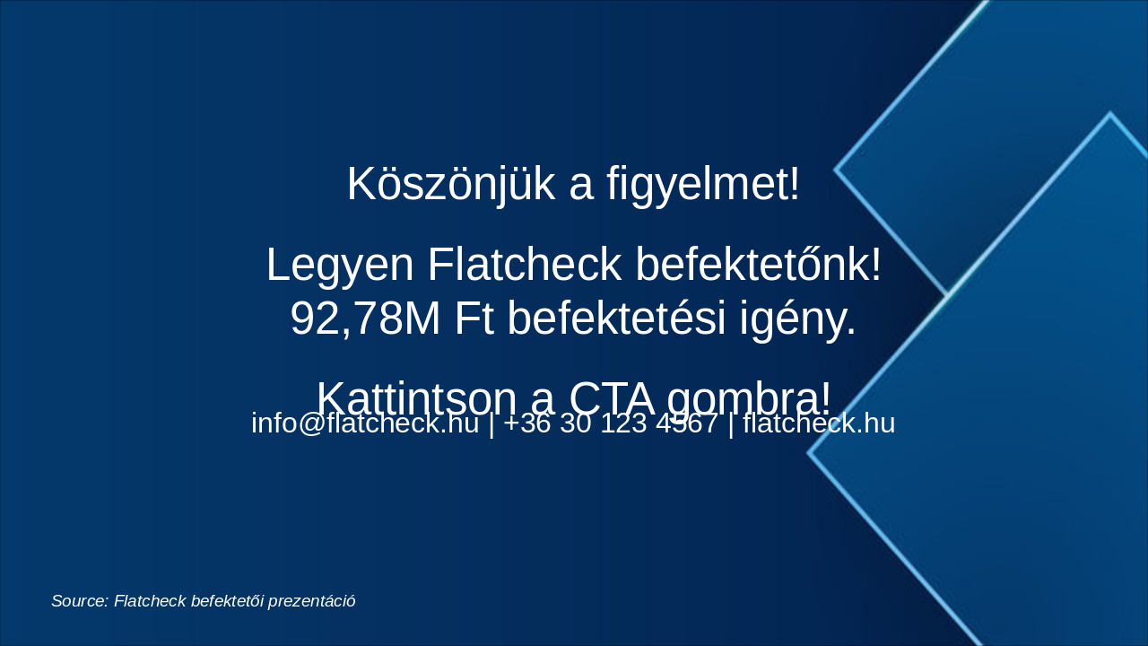 Kapcsolatfelvétel és következő lépések a siker felé. Source: Flatcheck befektetői prezentáció