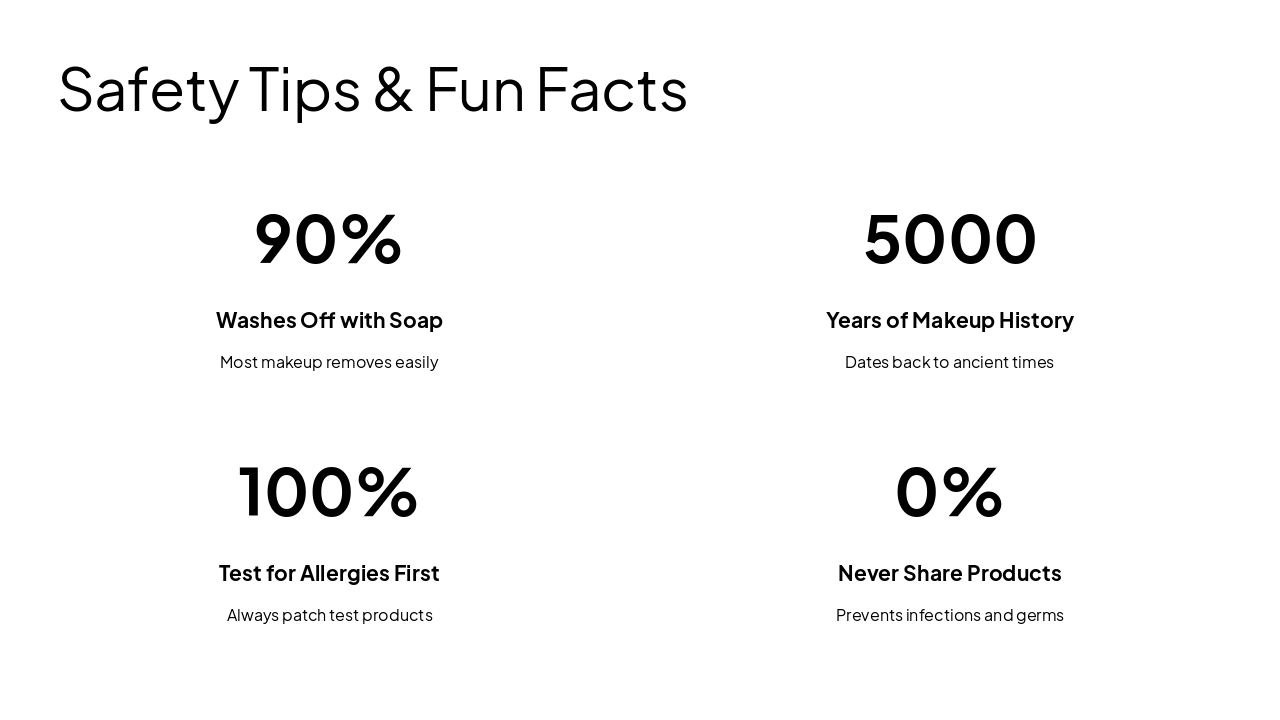 This title slide is titled "Introduction to Makeup" and is marked as a title type. Its subtitle reads "Fun and Safe Basics for Beginners," introducing foundational makeup concepts for newcomers.
