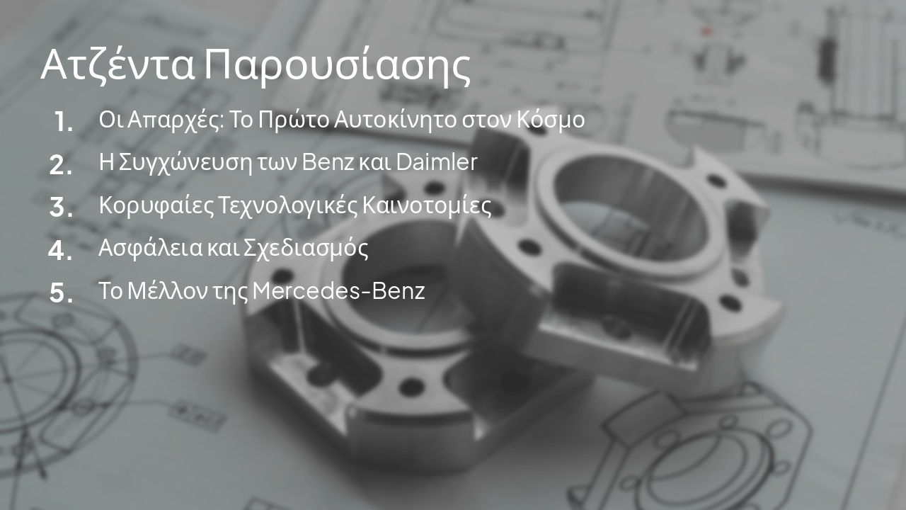 Παρουσίαση της ιστορίας και των τεχνολογικών καινοτομιών της Mercedes-Benz, από το πρώτο αυτοκίνητο του Carl Benz και τη συγχώνευση με Daimler, έως πρωτοποριακά συστήματα ασφάλειας, κινητήρες και το μέλλον της ηλεκτρικής κίνησης.