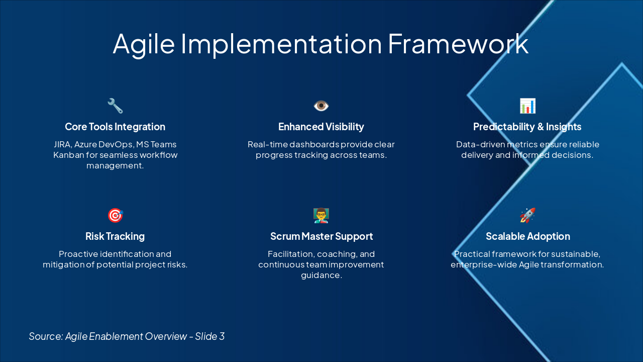 Explain fit-for-purpose use cases for each framework. Scrum offers structure and predictability for teams needing defined cadences. Kanban provides flexibility and flow for variable workloads. Recommend hybrid approach for scalability across projects.