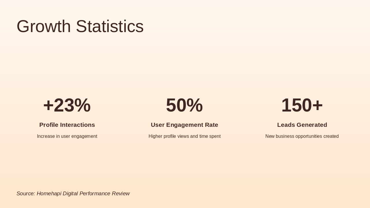 Introduction with logo and +23% interaction stats.