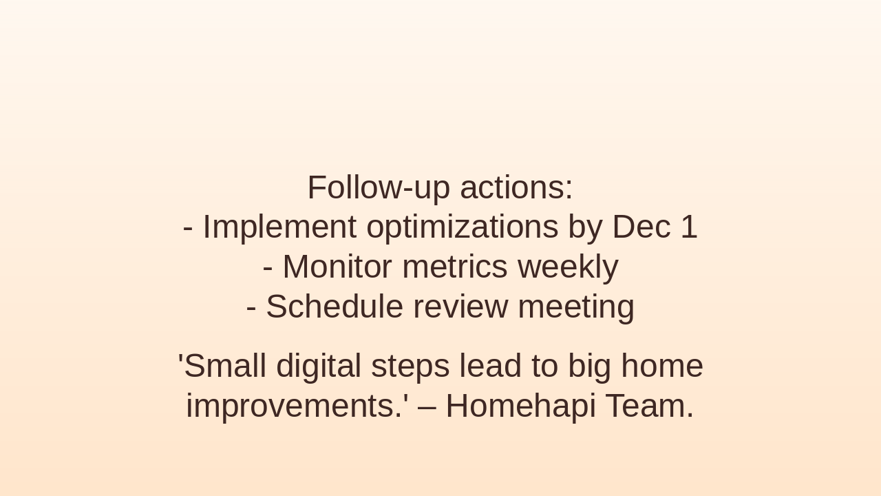 Action items, follow-up, and performance quote.