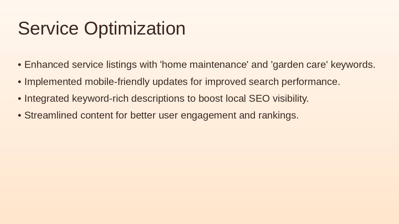 - SEO and Service Optimization