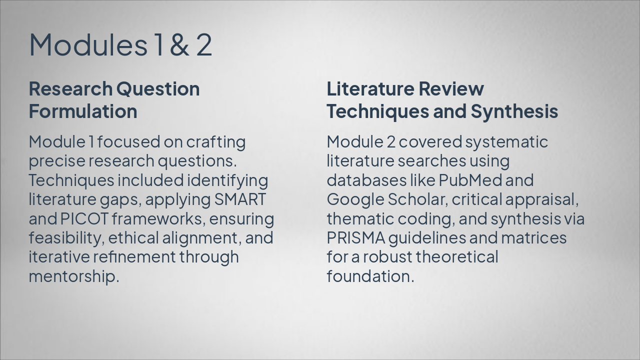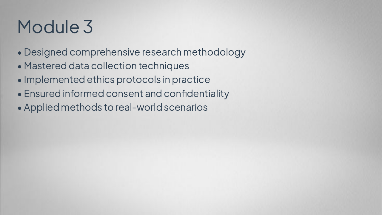 Step-by-step journey: ideation, execution, analysis, and refinement of personal research project.