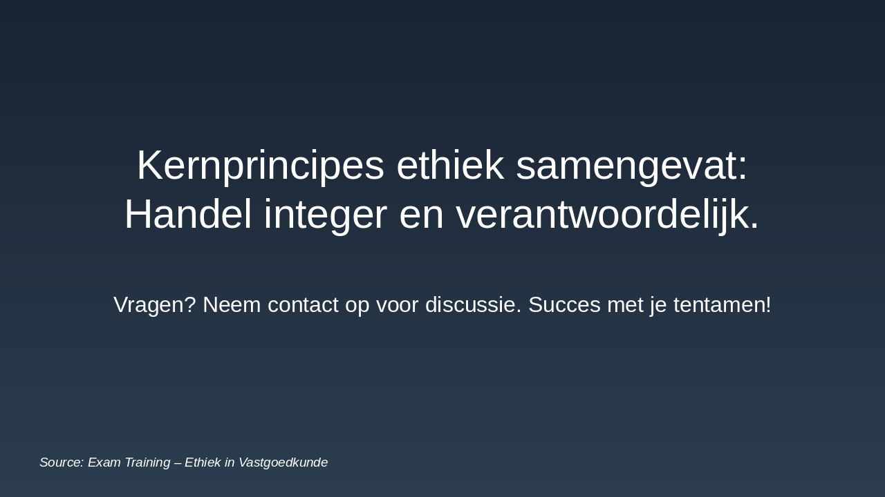 Grondslagen ethiek in vastgoed en erecode verplichtingen.