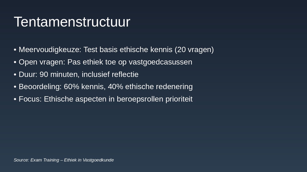 - Tentamenstructuur