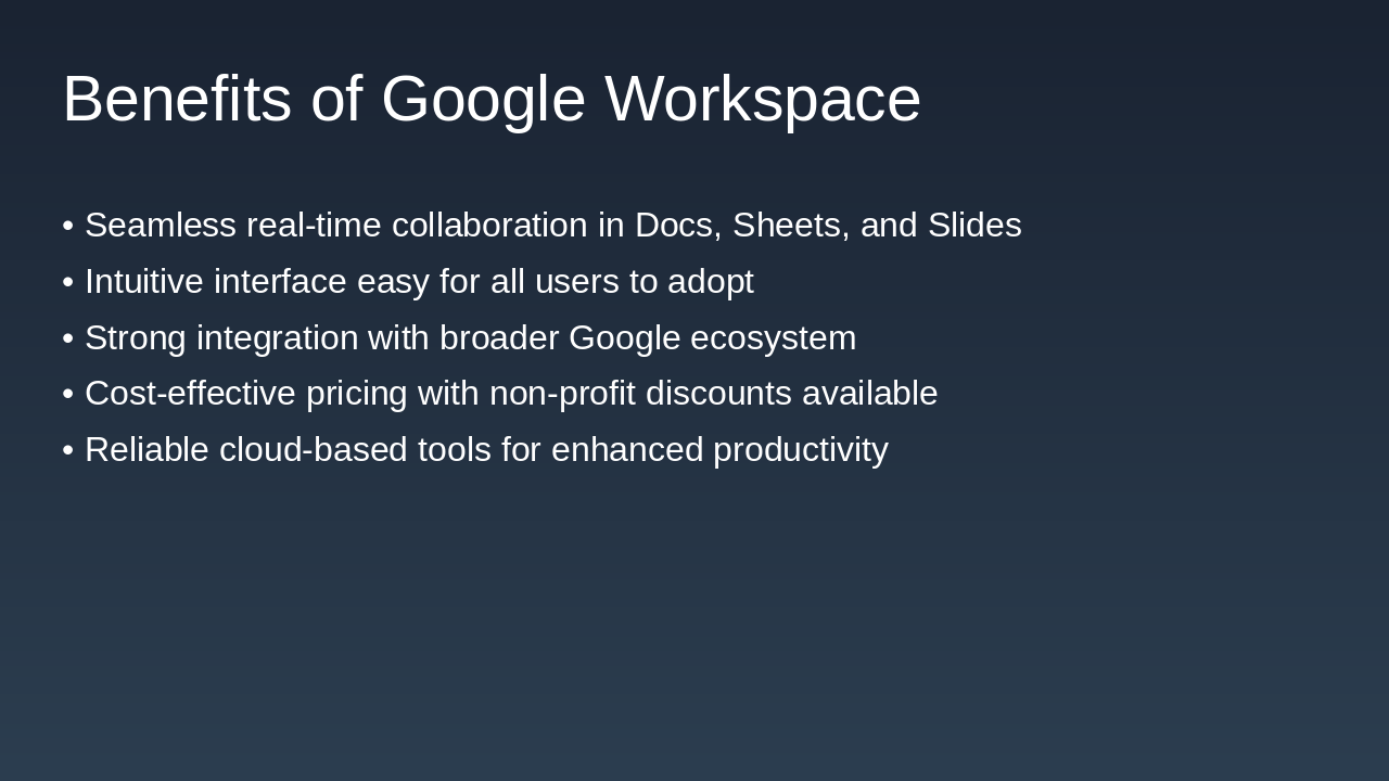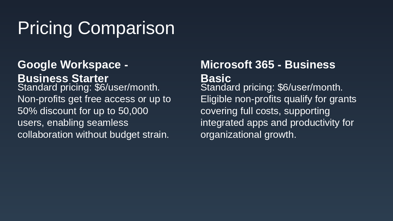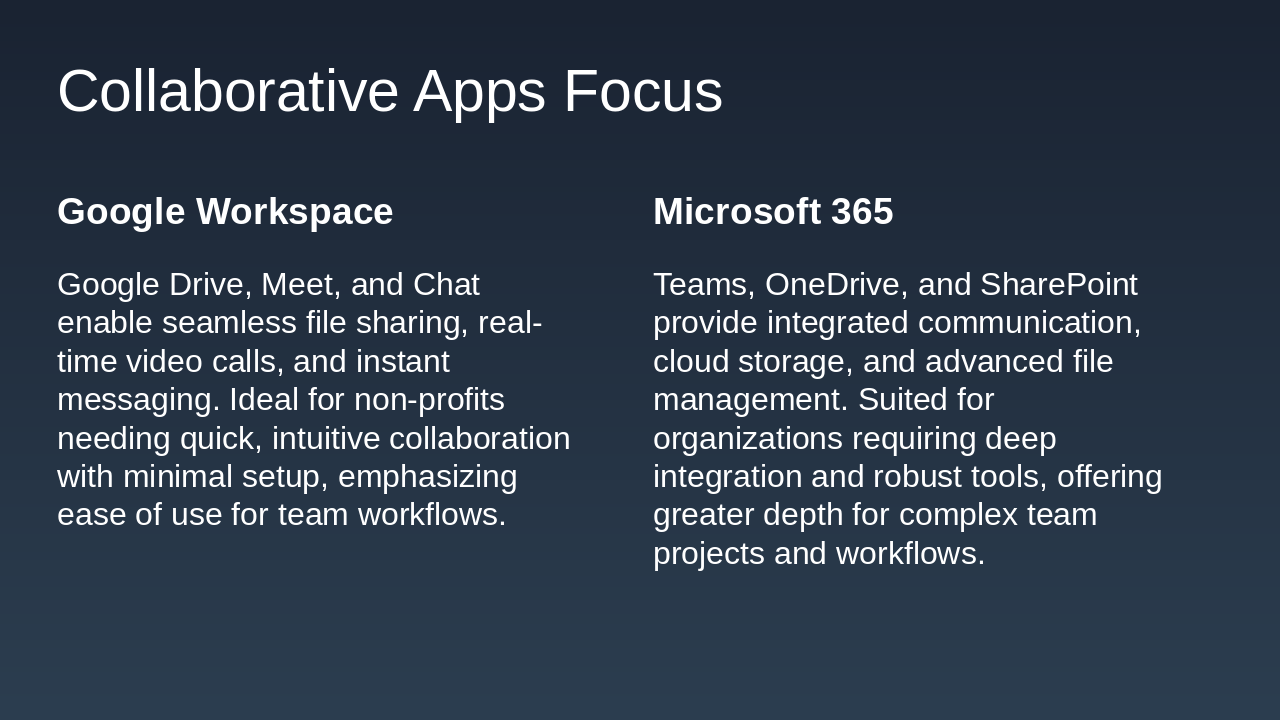 Introduction to choosing between Google Workspace and Microsoft 365 for our non-profit.