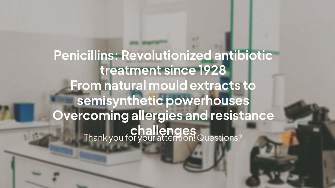 Penicillins: Revolutionized antibiotic treatment since 1928 From natural mould extracts to semisynthetic powerhouses Overcoming allergies and resistance challenges