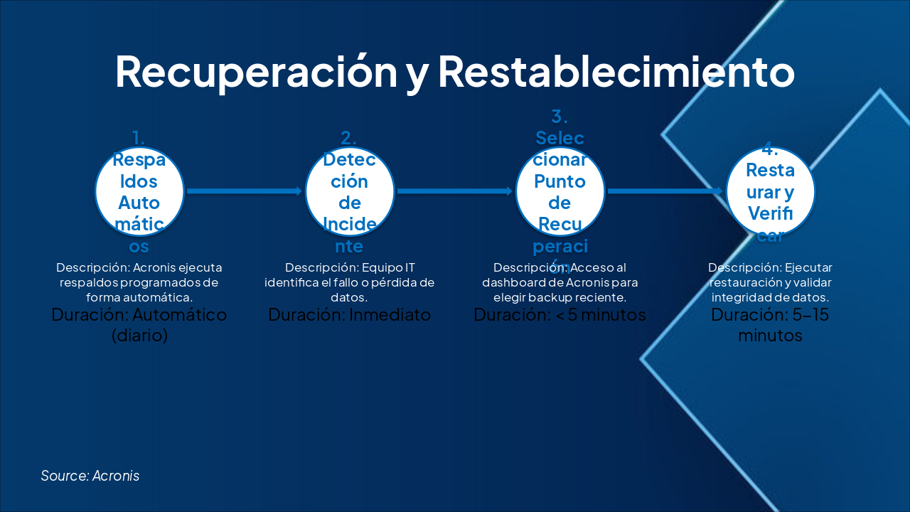 Gráfico: Ecosistema con VPS, FortiEDR y Acronis. Texto: Modelo de continuidad y seguridad integrado.