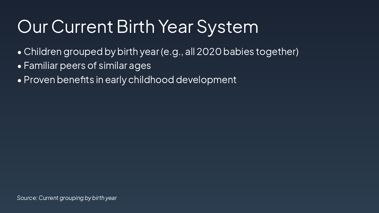 Key drivers behind shifting from birth year to school year.