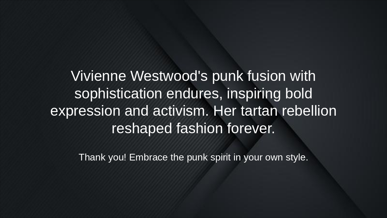 Source: Adapted from Vivienne Westwood's reflections on fashion's revolutionary power