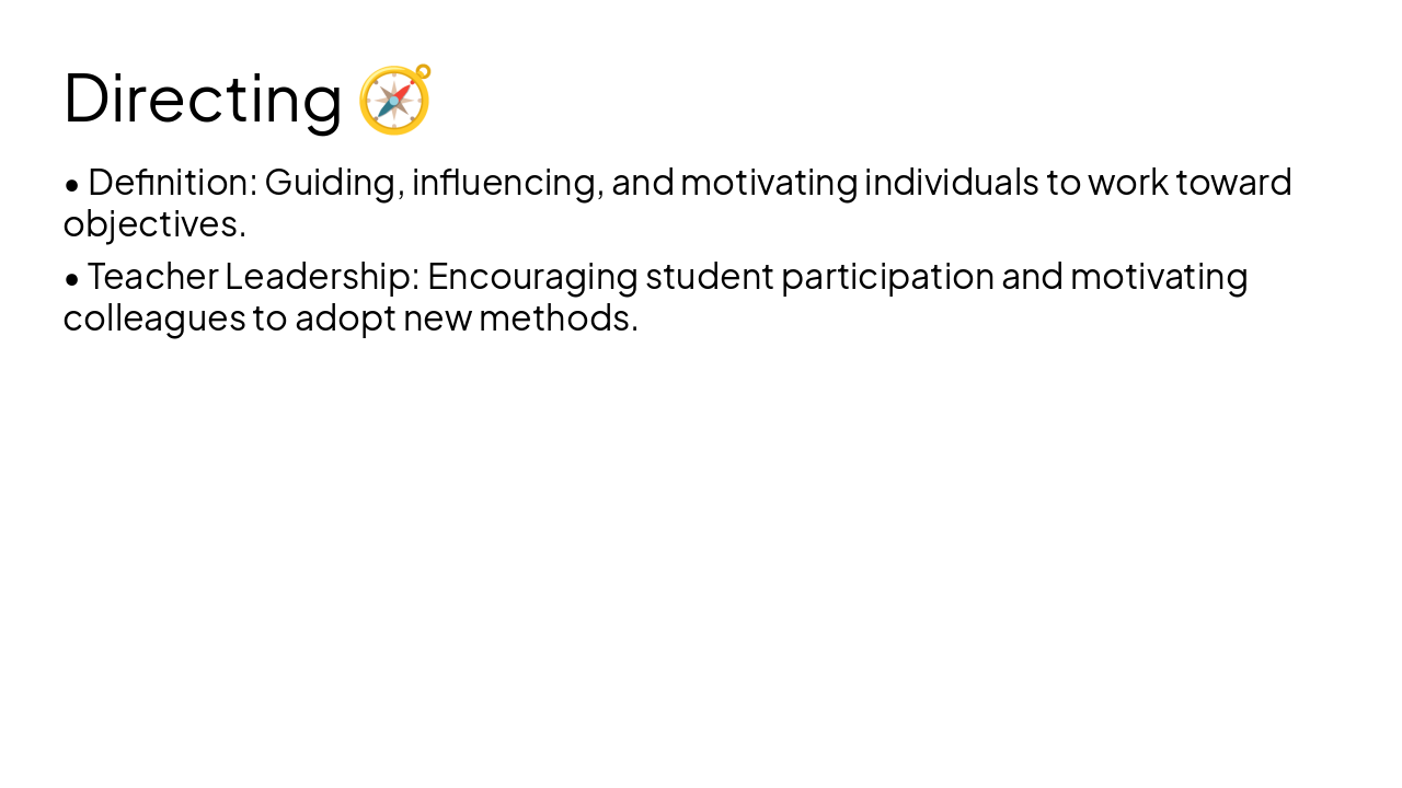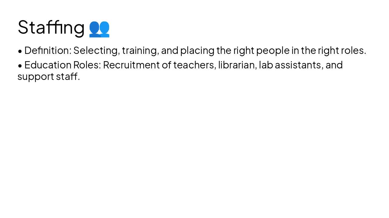 Create a quick but complete PowerPoint presentation for B.Ed students on Unit 1: Introduction to Organization, Administration, and Management. Use clear, simple but professional language. Keep slides concise. Slides: 1. Title Slide 2. Objectives 3. Organization (definition + school example) 4. Concept of Organization (structure + types) 5. Administration (definition + school example) 6. Management (definition + classroom example) 7. Differences (table) 8. Importance of Management in Education 9. Good vs Poor Management (comparison) 10. Elements of Management 11. Planning (lesson example) 12. Organizing (school example) 13. Staffing (education roles) 14. Directing (teacher leadership) 15. Controlling (assessment) 16. Summary 17. Short Activity Add simple visual/icon suggestions per slide.