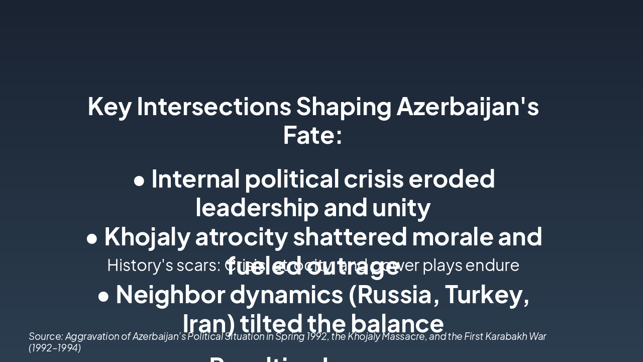 Summary of crisis, dynamics, and atrocities shaping Azerbaijan. Source: Aggravation of Azerbaijan’s Political Situation in Spring 1992, the Khojaly Massacre, and the First Karabakh War (1992–1994)