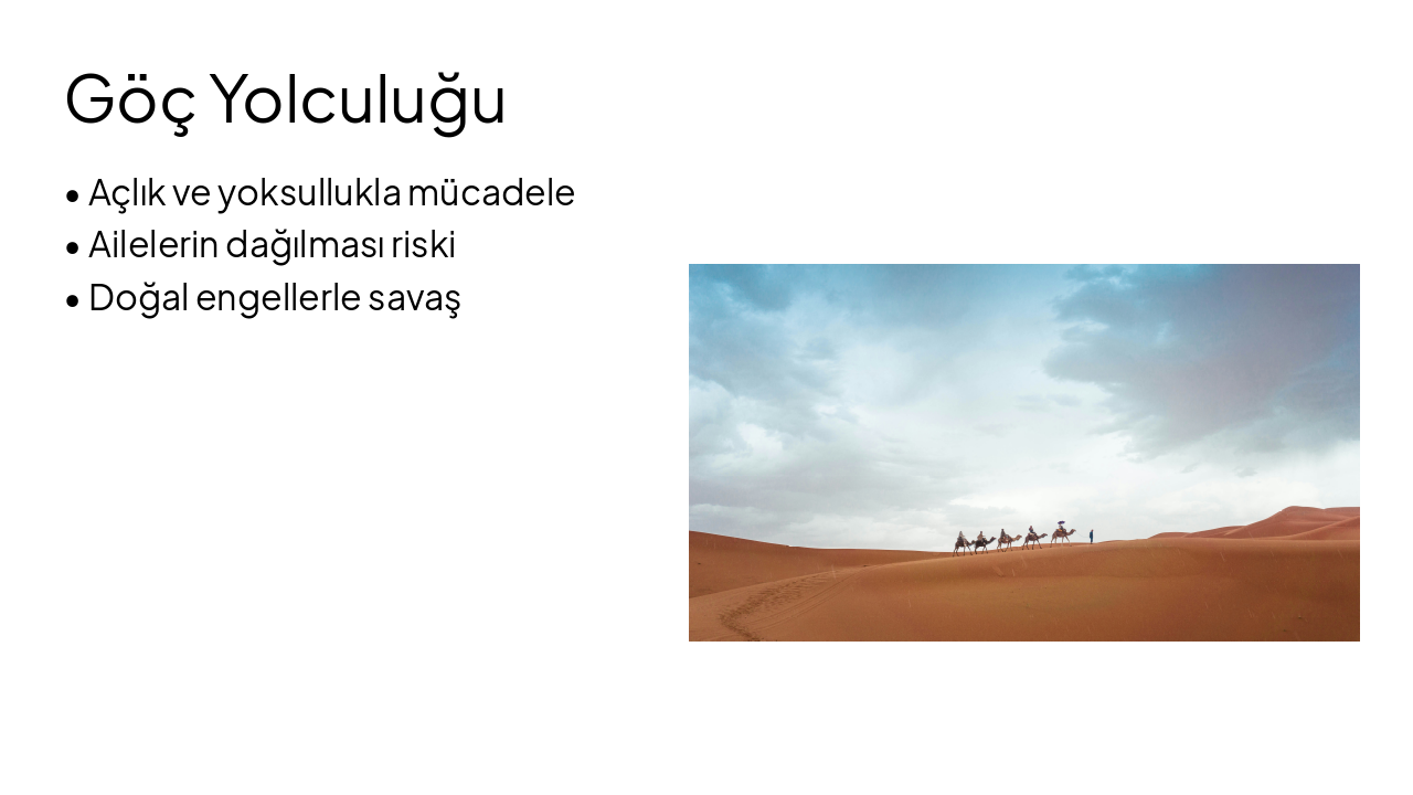 göç destanı için slayt sunusu hazırla ama orta uzunlukta olsun görsel de olsun ama böyle bütün sayfayı kaplayacak şekilde olmasın lütfen