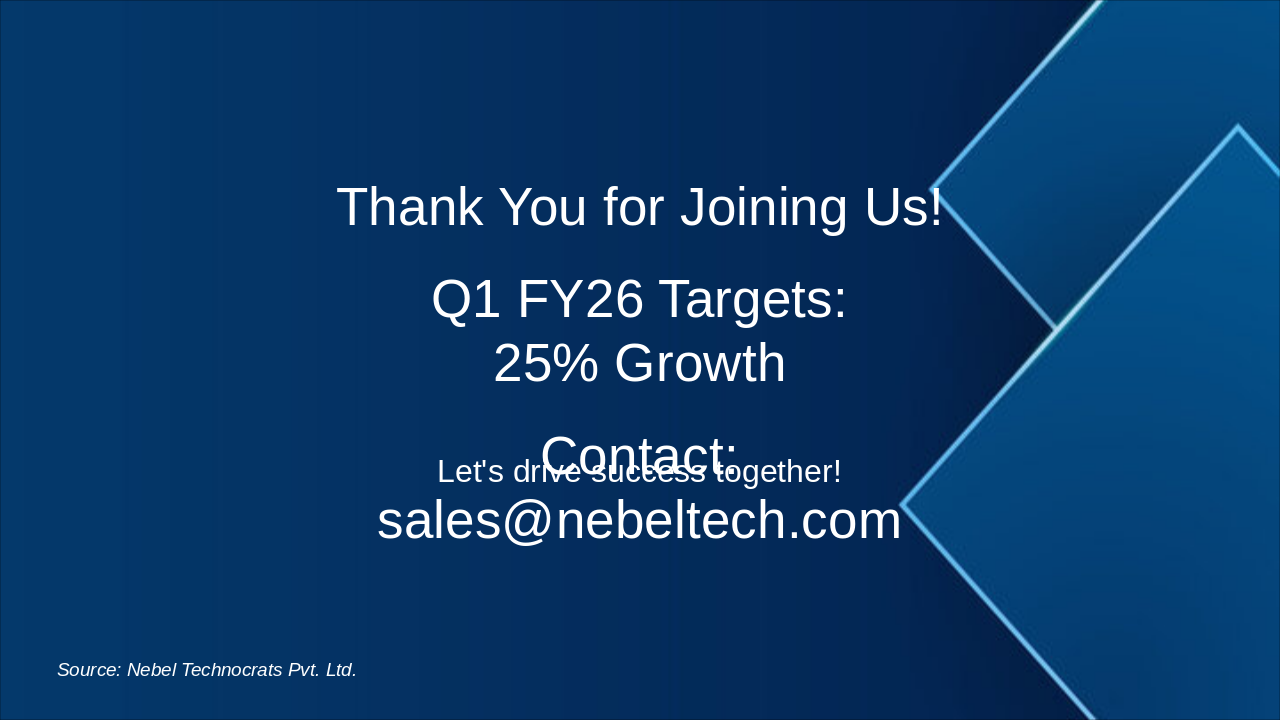 Highlights of achievements, future actions, and concluding remarks. Source: Nebel Technocrats Pvt. Ltd. - Sales Report FY 2025–26
