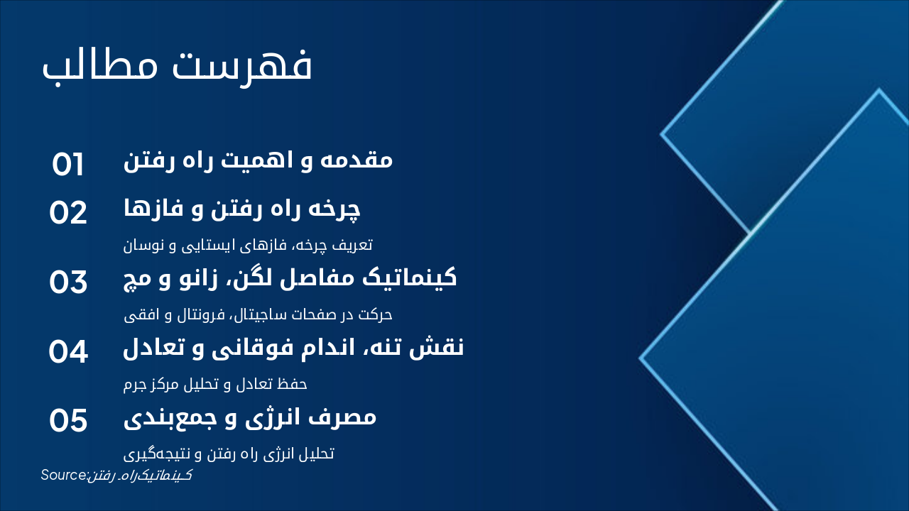 توضیح فازهای چرخه راه رفتن با درصد پیشرفت.