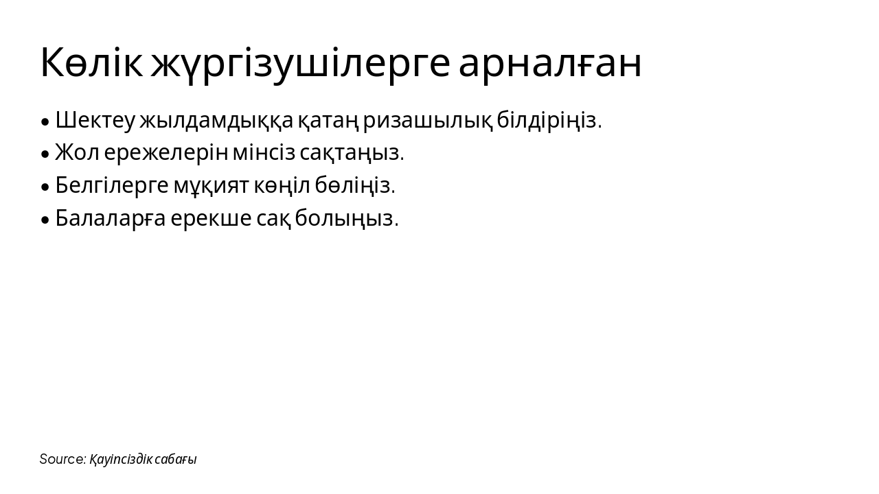 Source: Жол қозғалысы ережелері және өмір қауіпсіздігі