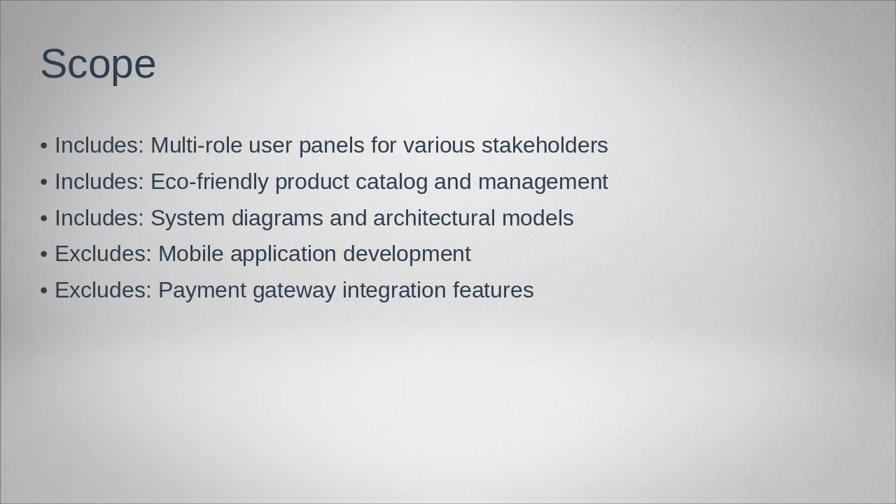 Define main goals, project boundaries, and technologies like PHP and MySQL.