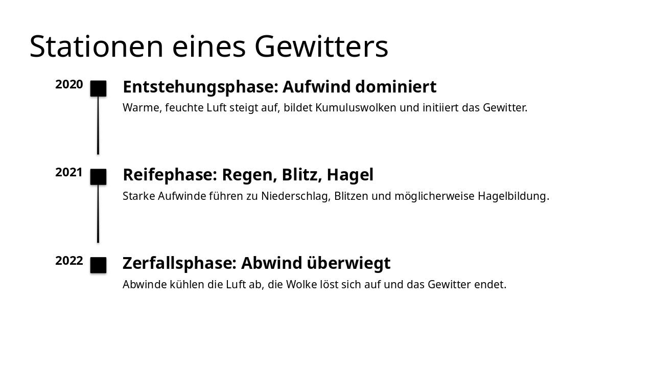 Phasen: Entstehung, Reife und Zerfall eines typischen Gewitters
