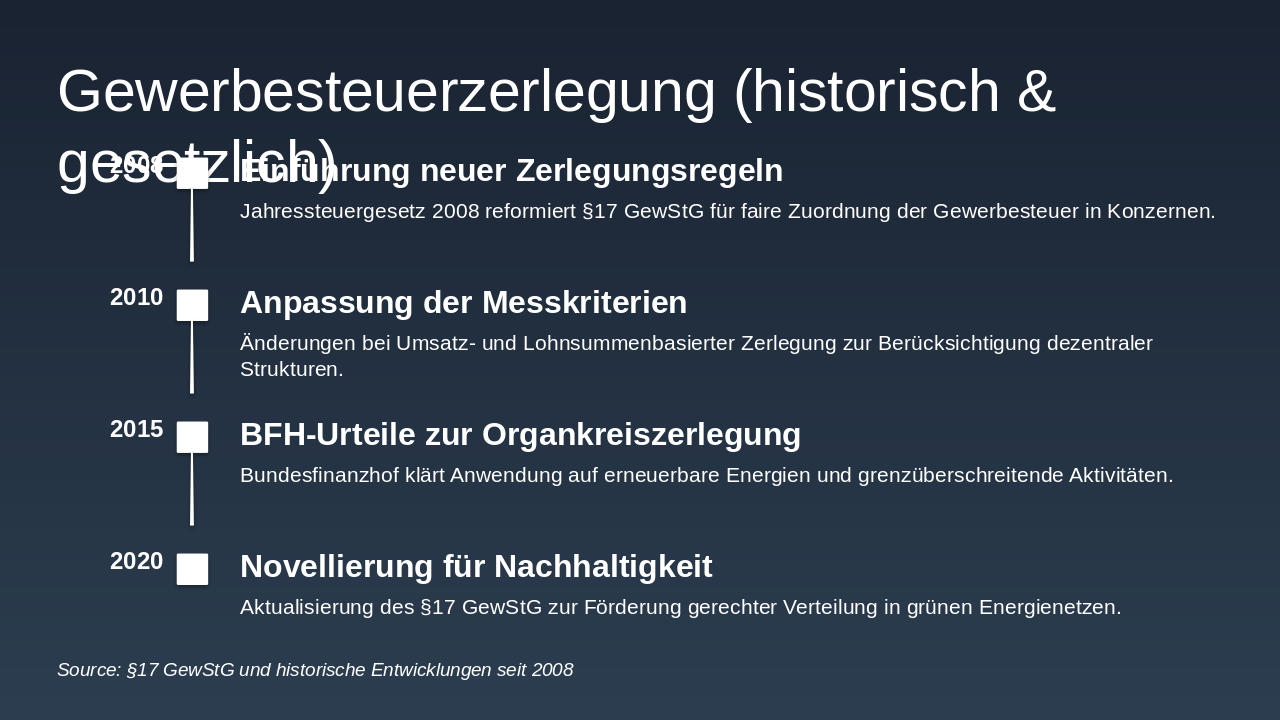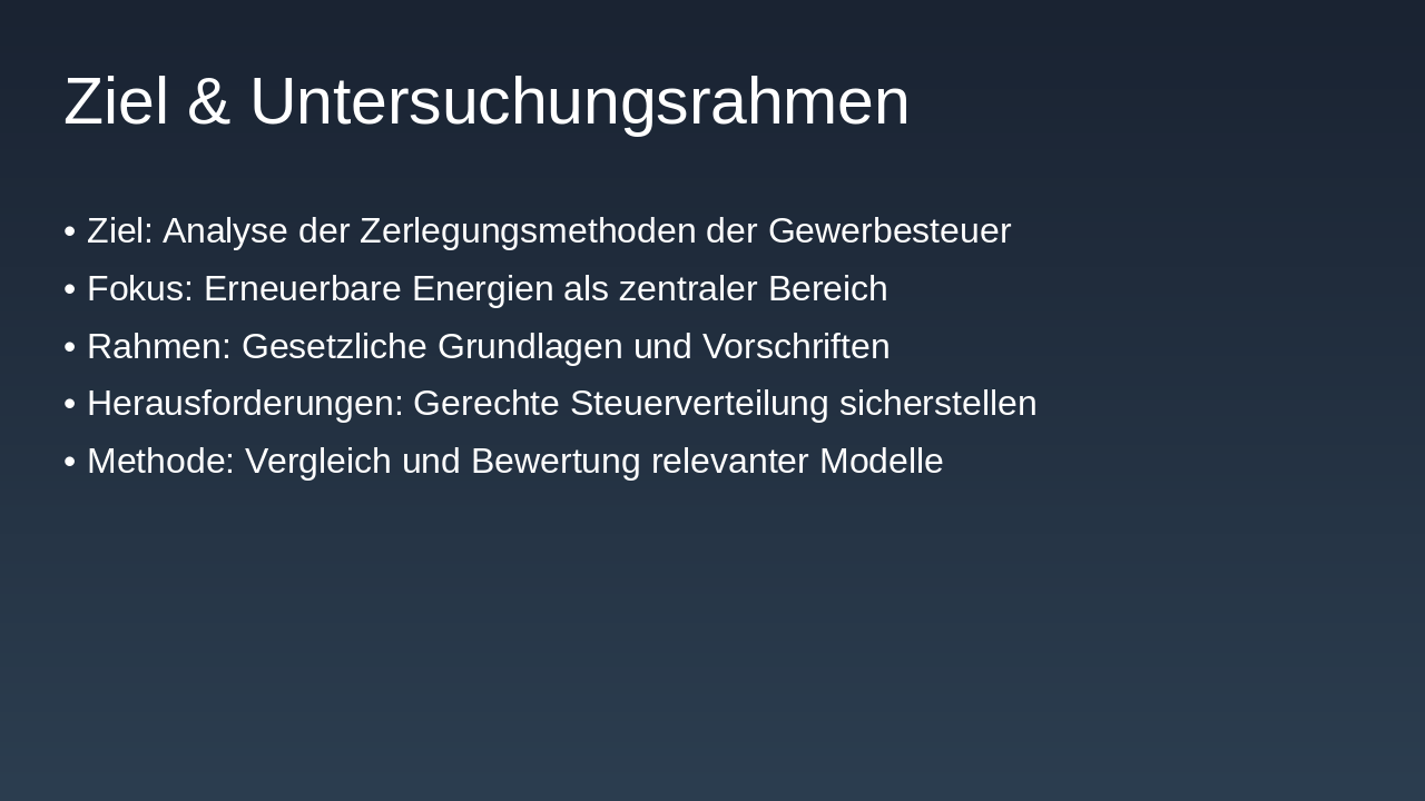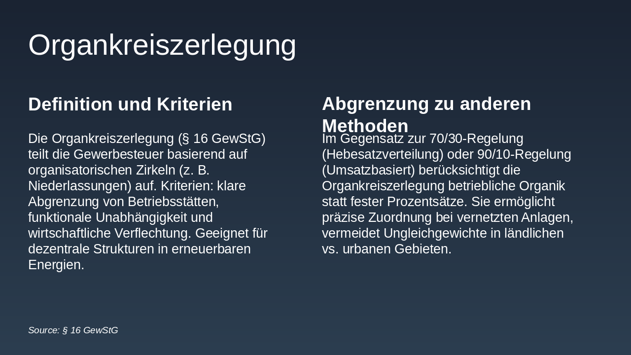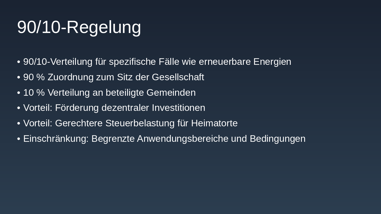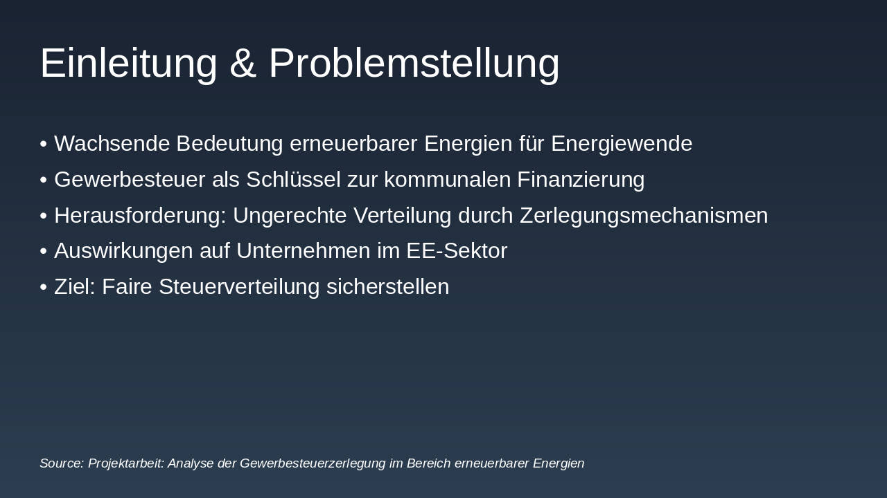 **Zusammenfassung der Erkenntnisse: Die Gewerbesteuerzerlegung stellt erneuerbare Energien vor Verteilungsherausforderungen durch Regelungen wie 70/30 und 90/10. Lösungsansätze umfassen Organkreiszerlegung und steuerrechtliche Anpassungen für Fairness.
