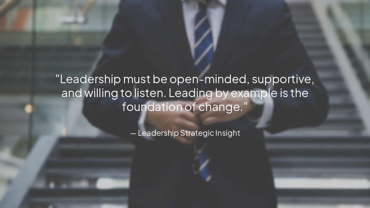 > Leadership must be open-minded, supportive, and willing to listen. Leading by example is the foundation of change.