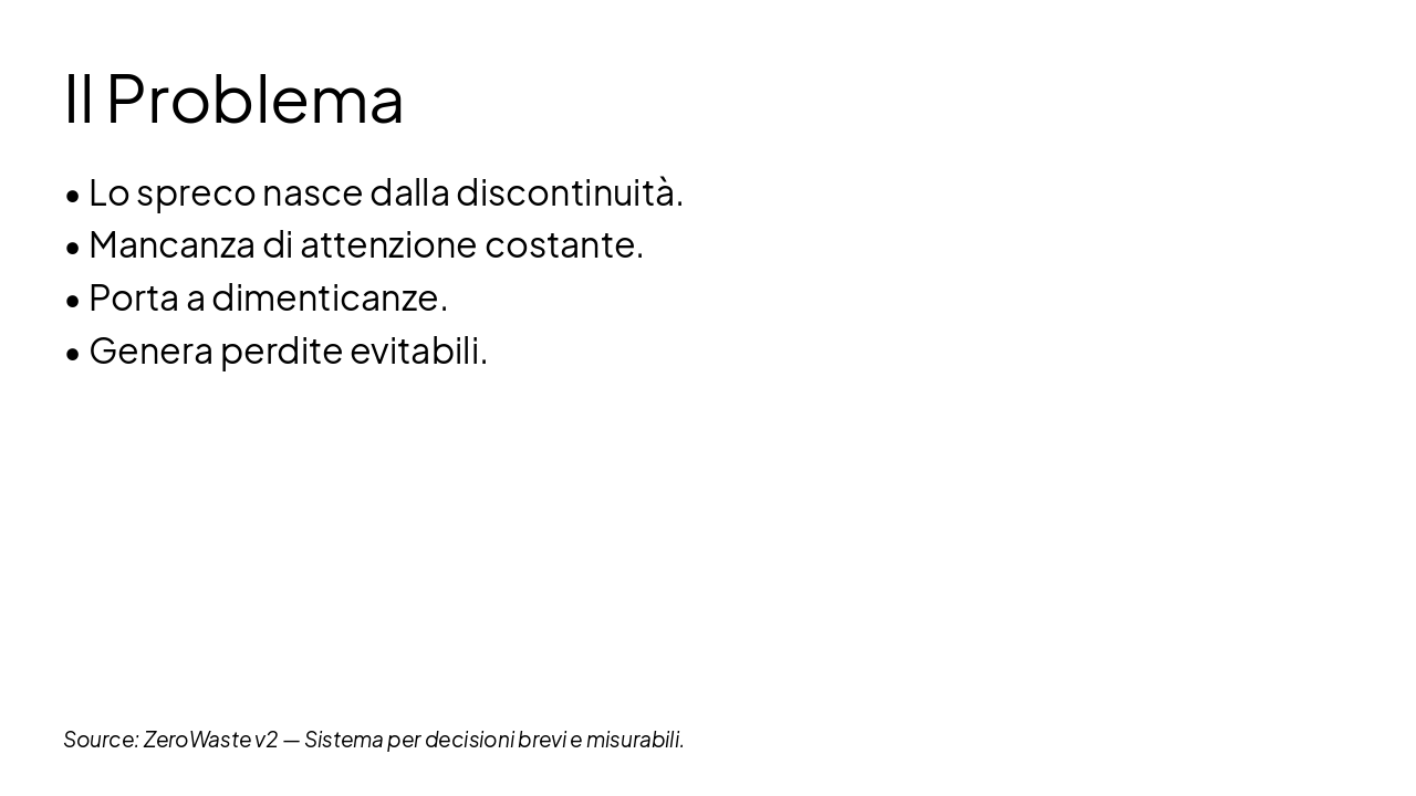 Source: ZeroWaste v2 — Sistema per decisioni brevi e misurabili