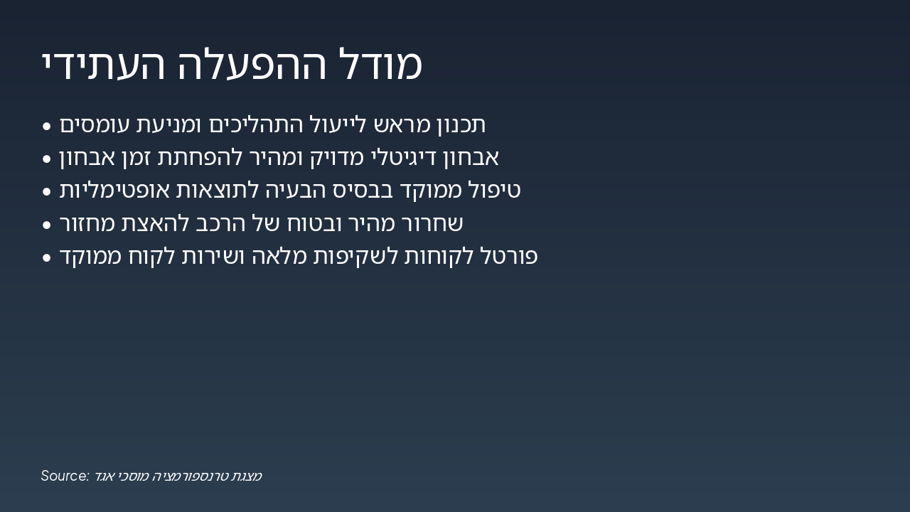 Source: אגד מוסכים - מודל הפעלה עתידי
