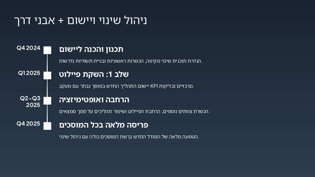 הסבר את הזרימה החלקה מקצה לקצה, הדגש אוטומציה, מדידה ושקיפות בכל שלב. התאם להדגשת היעילות להנהלה הבכירה.