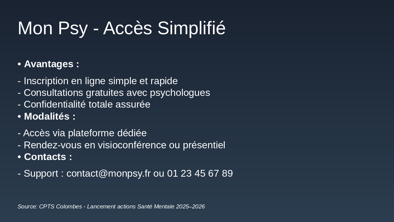 Source: Lancement actions Santé Mentale 2025–2026 - CPTS Colombes