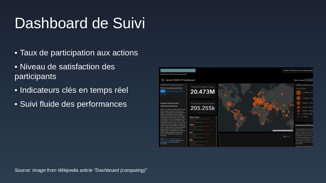 Récapitulez les actions clés, invitez à participer au forum et fournissez les contacts. Utilisez une icône de coche pour symboliser la fin.