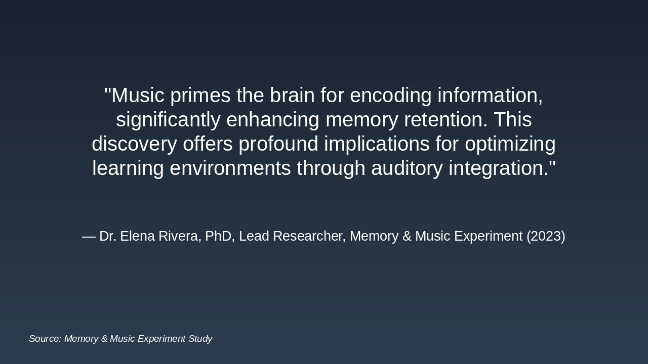 — Dr. Elena Rivera, PhD, Lead Researcher, Memory & Music Experiment (2023)
