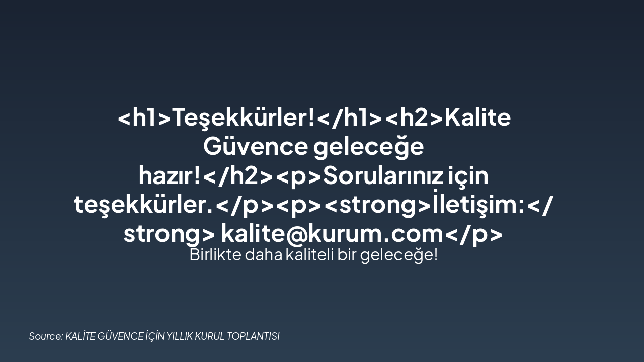 Özet ve katılımcı soruları için açık tartışma. Source: KALİTE GÜVENCE İÇİN YILLIK KURUL TOPLANTISI