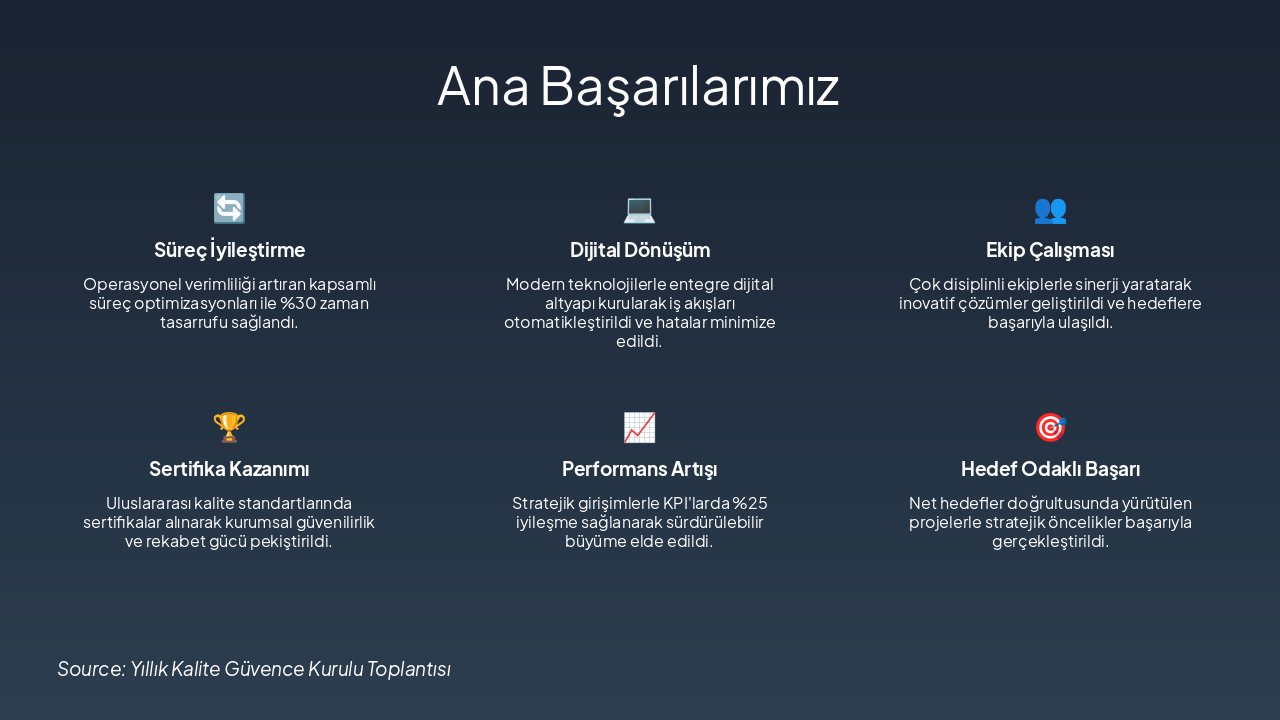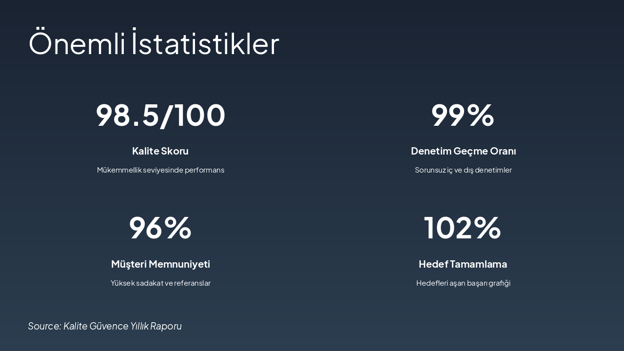Etkileyici ve profesyonel sunum yapısı, kalite güvence odaklı.