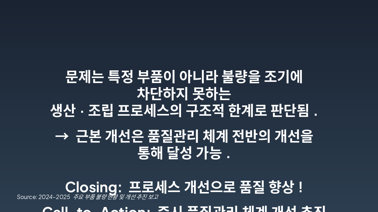 Call-to-Action: 즉시 품질관리 체계 개선 추진 합시다.