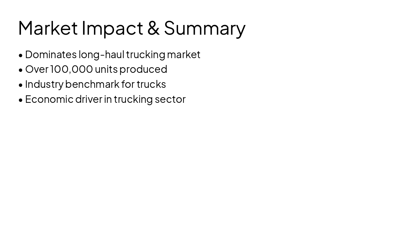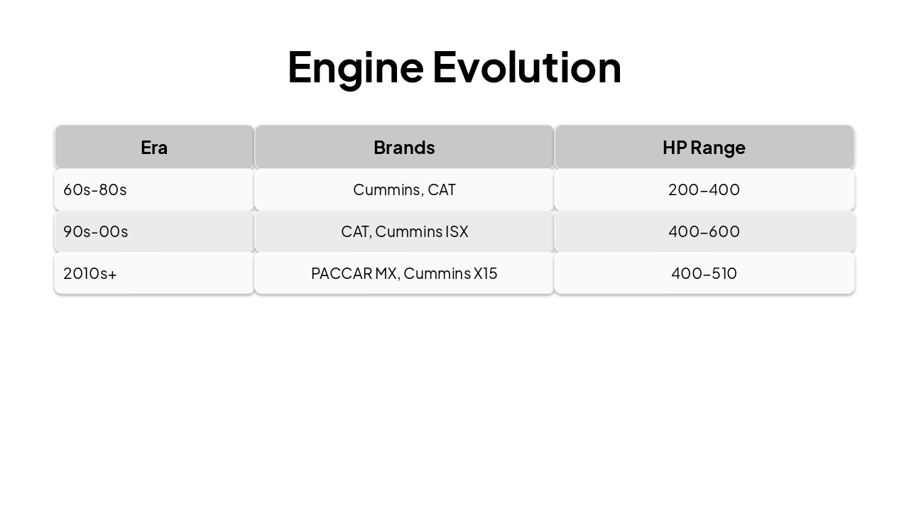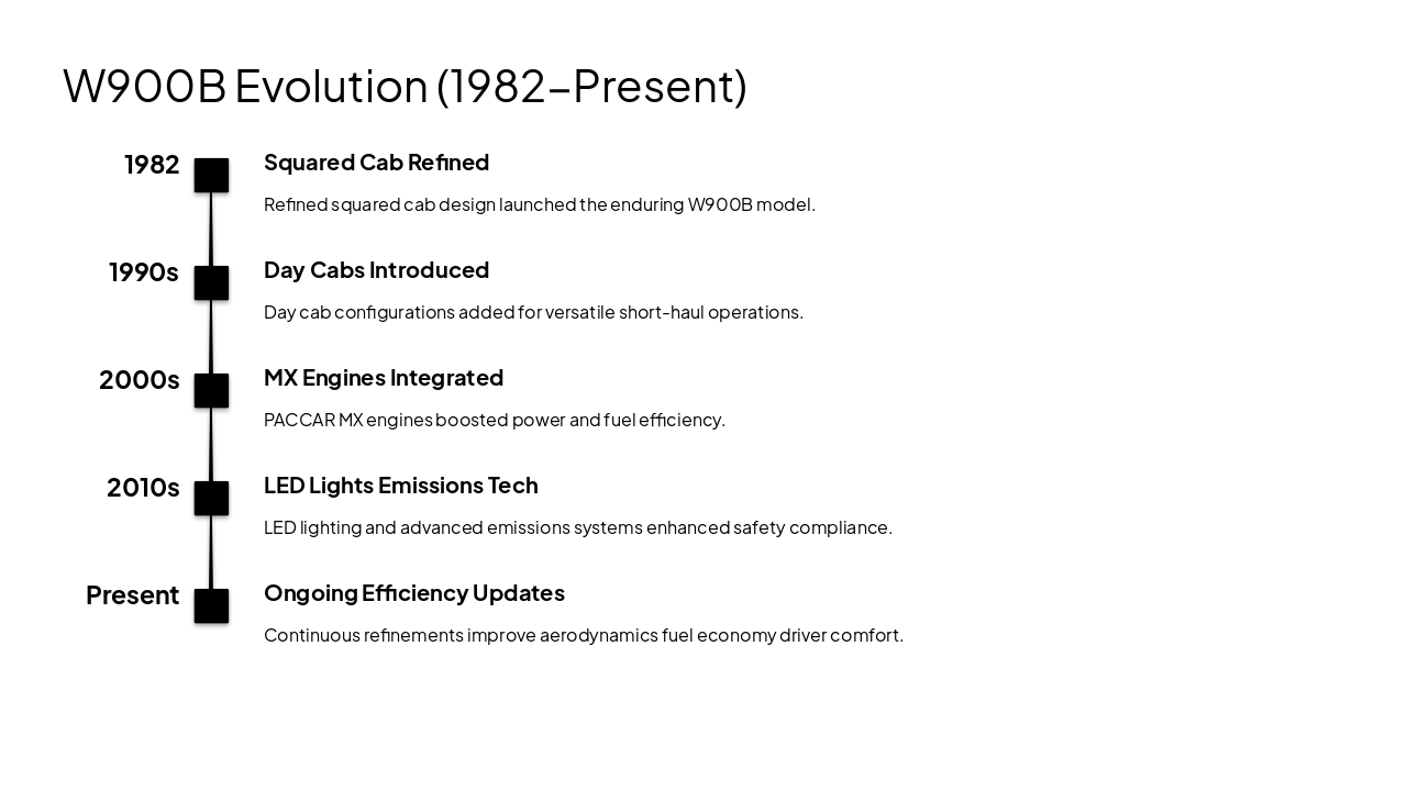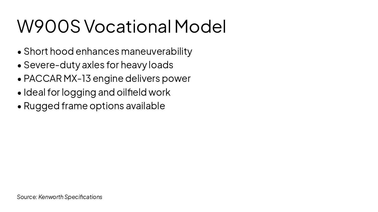 { "features": [ { "icon": "🚜", "heading": "Extended Hoods", "description": "Ample space for large engines and cooling systems in heavy-duty applications." }, { "icon": "💎", "heading": "High-End Chrome", "description": "Luxurious chrome packages for premium aesthetics and standout road presence." }, { "icon": "🛏️", "heading": "76-Inch Sleepers", "description": "Spacious premium sleepers designed for maximum long-haul driver comfort." }, { "icon": "🪑", "heading": "Luxury Interiors", "description": "High-quality materials and ergonomic designs for superior cab luxury." }, { "icon": "💪", "heading": "Heavy-Haul Leader", "description": "Vocational prowess optimized for extreme heavy-haul towing and performance." } ] }