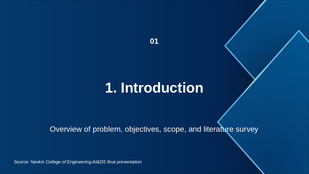 Outline of the presentation structure for Navkis College of Engineering AI&DS final presentation.