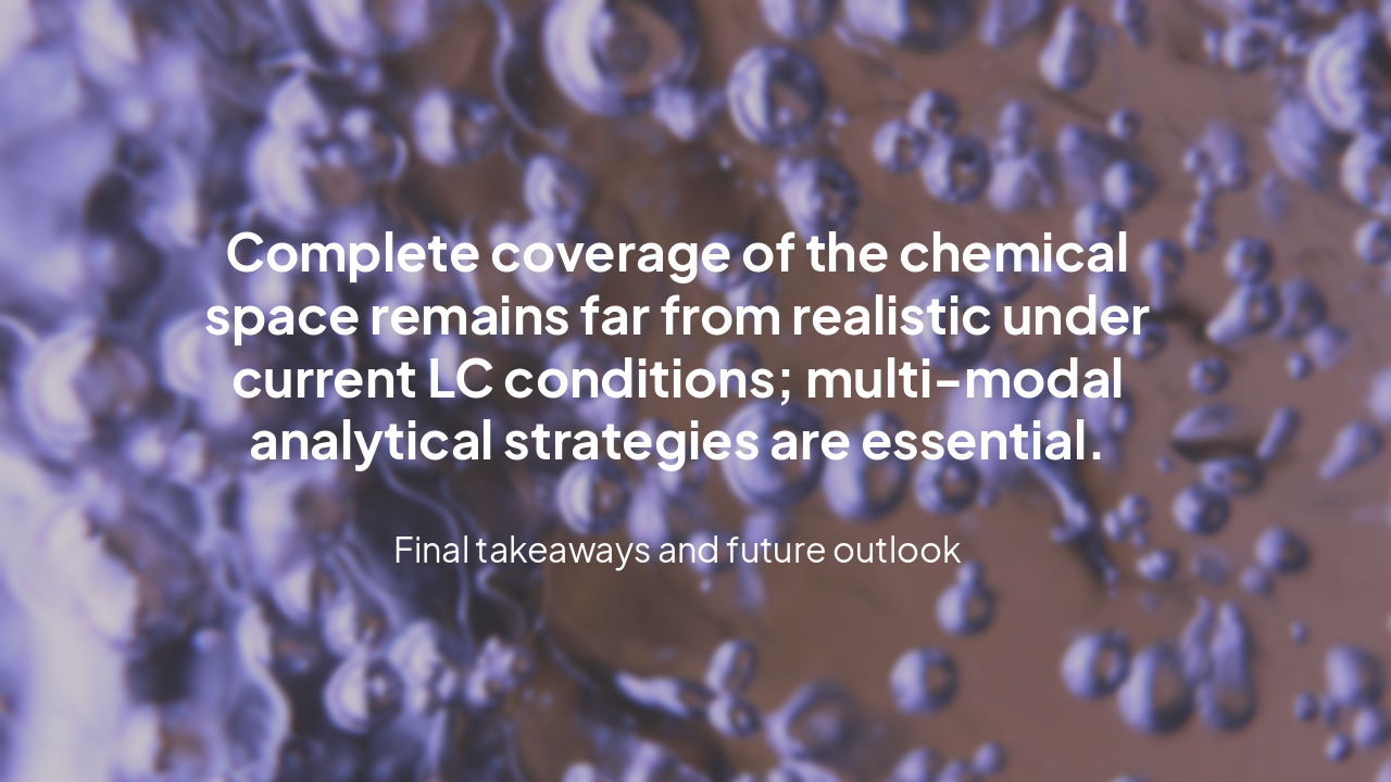 Complete coverage of the chemical space remains far from realistic under current LC conditions; multi-modal analytical strategies are essential.