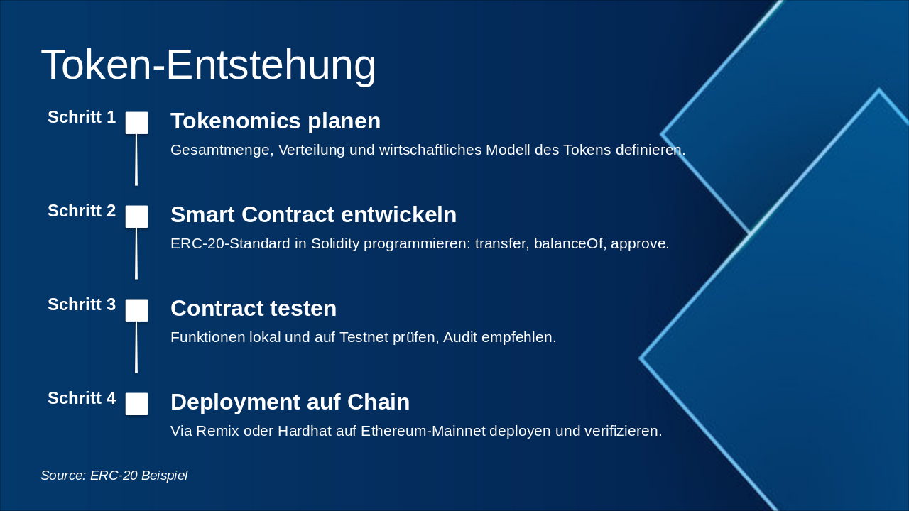 – Schritte: Tokenomics, Smart Contract, Deployment