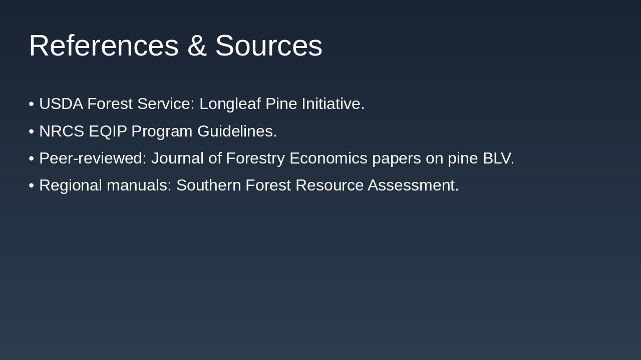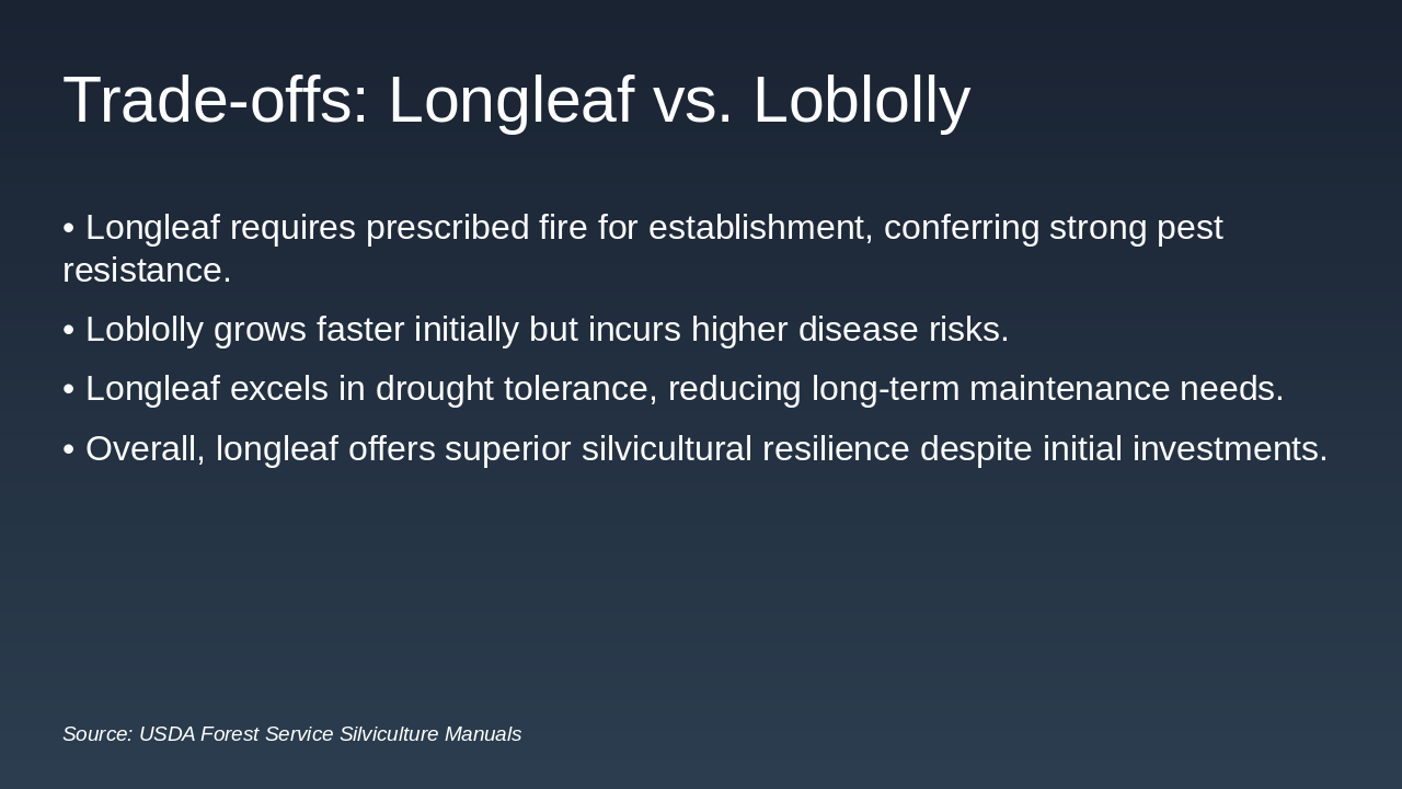 - Recommendation: Prioritize longleaf for sustainable, resilient forestry