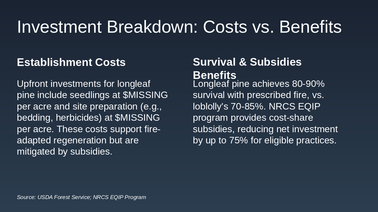 Source: USDA Forest Service, NRCS EQIP, Peer-Reviewed Forestry Studies