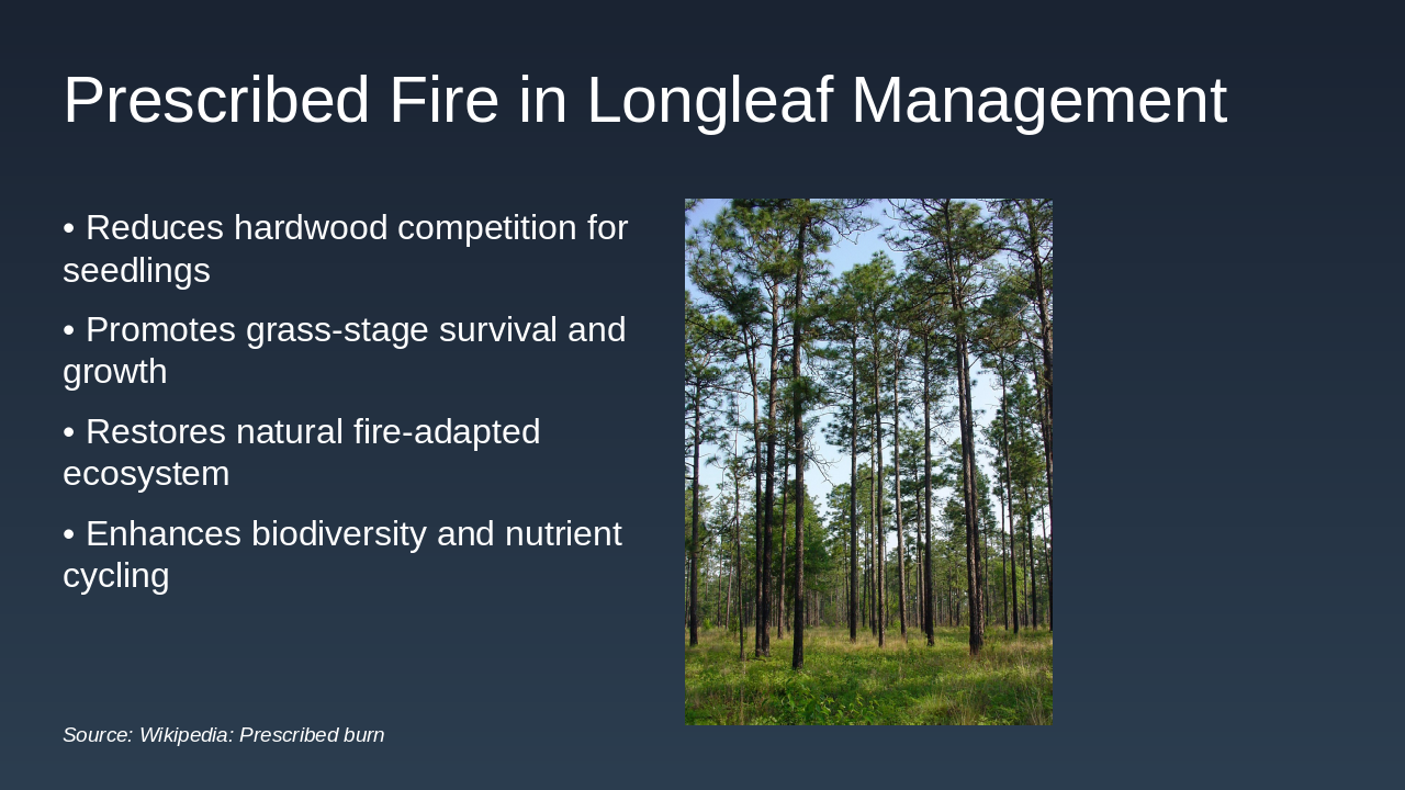 - Silvicultural Advantages: Fire resilience, efficient adaptive management