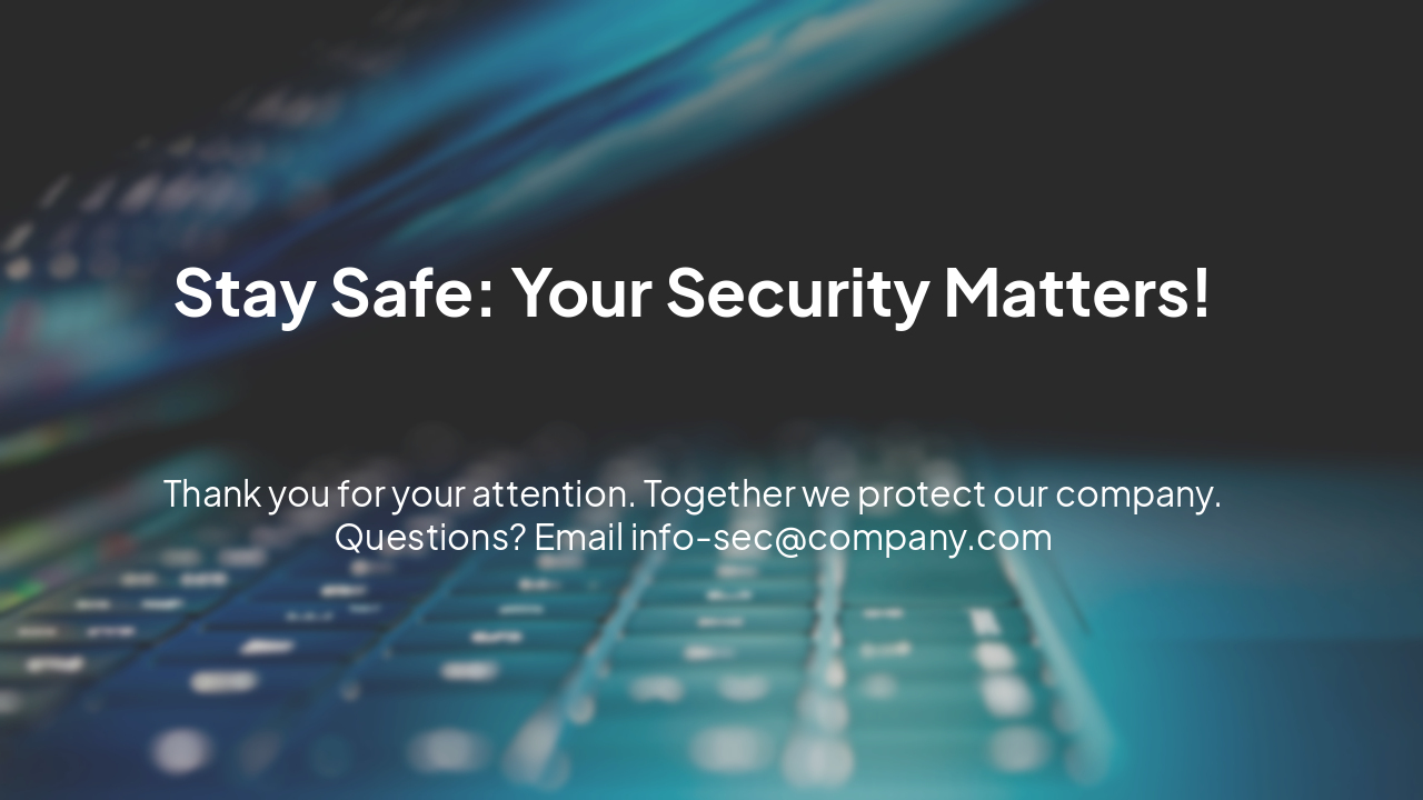 Thank you for your attention. Together we protect our company. Questions? Email info-sec@company.com
