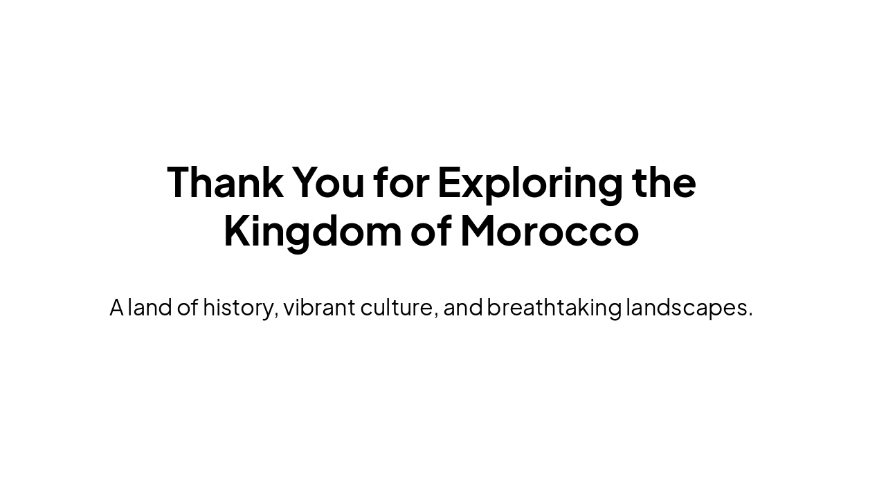Refine and redesign the uploaded presentation about The Kingdom of Morocco while keeping the original text, core ideas, and informational structure intact. Make it visually modern, polished, professional, and more engaging with improved slide layouts, better organization, elegant typography, cohesive color palette inspired by Morocco, and enhanced visual hierarchy. Preserve the original topics: Geography and Topography, Climate, Currency, Languages, Traditional Clothing, Weddings, Culture and Customs, Food, Architecture and Handcraft, Music, Sport, Moroccan Personalities, Facts About Morocco, Visit Morocco, Imperial Cities, Mountains, Beaches, Sahara Desert, and Moroccan Hospitality. Improve flow and aesthetics but keep the meaning and substance of the original content. Ensure presentation looks academic and visually appealing for school/class use.