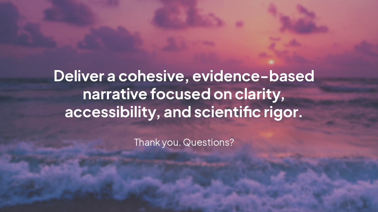 Deliver a cohesive, evidence-based narrative focused on clarity, accessibility, and scientific rigor.